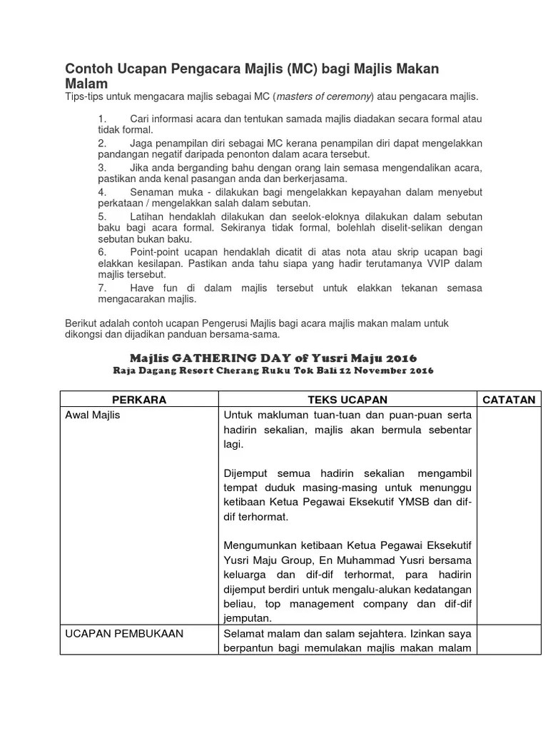 Teks Pengacara Majlis Makan Malam Tidak Formal / Teks Mc Makan Malam Pdf